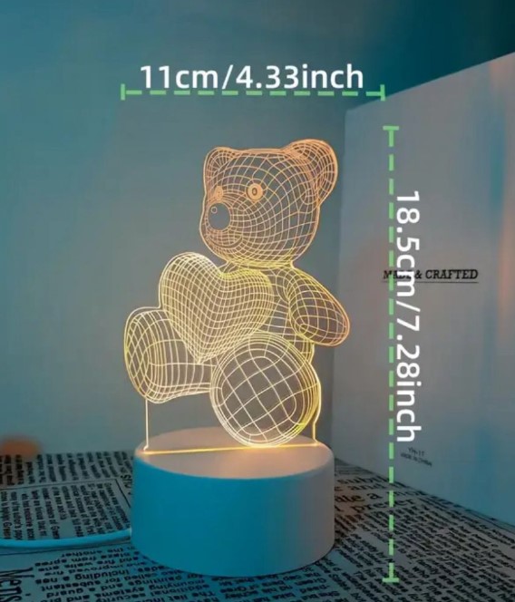 Lámpara 3D de Color Cálido, conexión con cable USB.