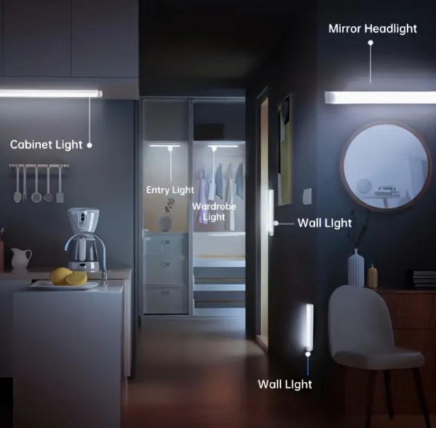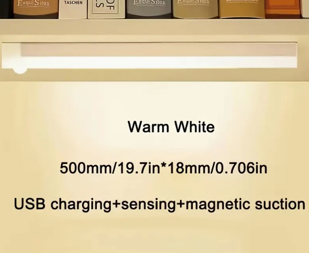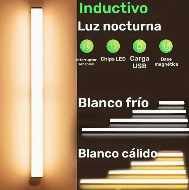 Luz nocturna con sensor de movimiento LED recargable por USB – Inalámbrica, encendido automático, montaje adhesivo imantado ultrafino para armarios, escaleras, pasillos, dormitorios, etc.